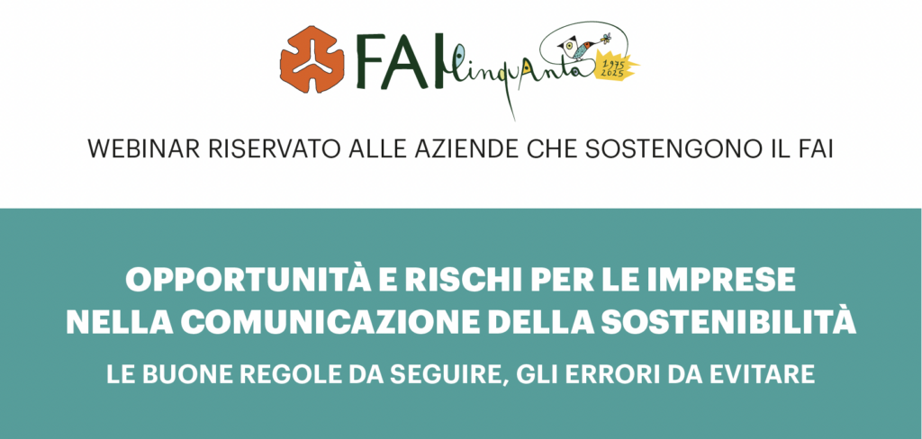 Infine, verranno presentate le testimonianze di alcune aziende vicine al FAI, che illustreranno come interpretano e comunicano la sostenibilità ambientale e sociale.